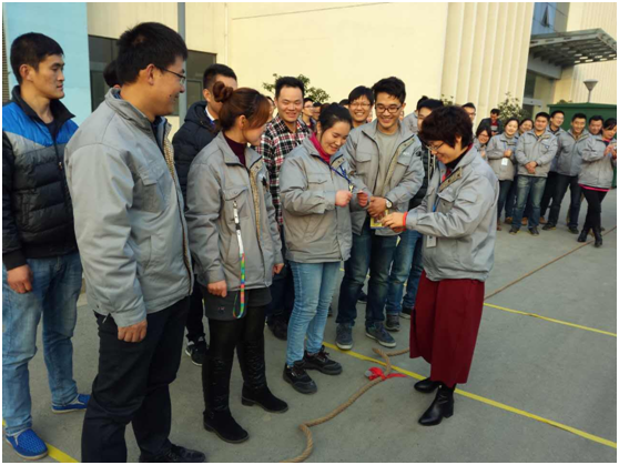 比赛实况转播:随着冠亚军争夺战哨声的吹响,观众群首先沸腾了,大家跟着拔河队伍的节奏“一二、一二”的呐喊。眼看,麻绳中央的红绳儿,一点点的往左边的一队移动,观众们更是卯足了劲为正处于落后形式的四队加油,就连一同观战的曹燕副总经理、周红斌副总经理也站在了四队的旁边,挥着拳头卖力的喊着“一二、一二”为四队打节奏。眼看着,红绳开始慢慢“回头”,一点一点的偏向四队,观众群顿时喊声震天,四队的队员气势大增,各个向后倒,紧紧握住绳子,咬牙坚持,一鼓作气,以不容置疑的姿态获得全胜,众望所归。