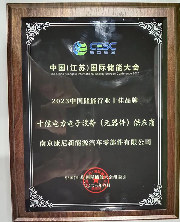 南京康尼新能源汽车零部件有限公司荣获“2023年中国储能行业十佳品牌”